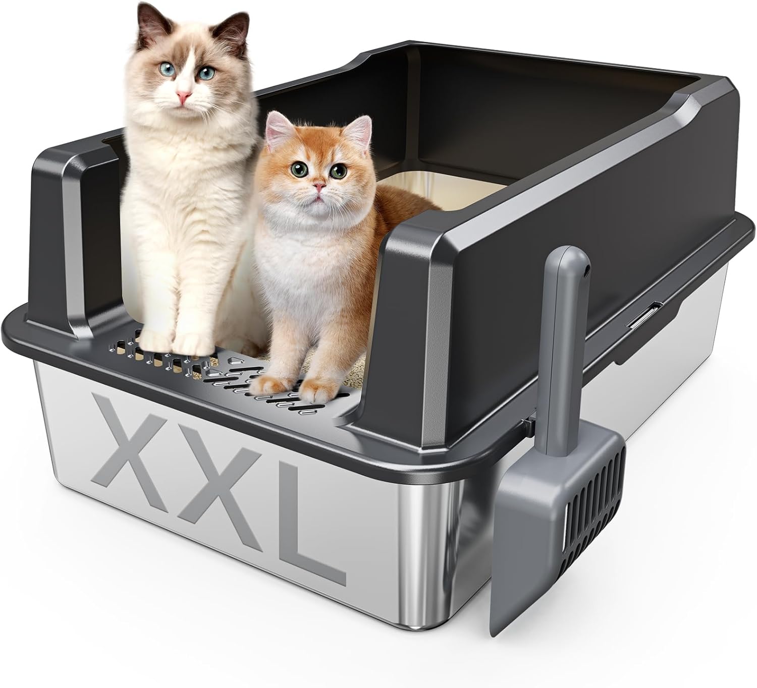 • 【XXL Stainless Steel Litter Box】extra large cat litter box with high sides is much larger than other xxl litter boxes for big cats (26”x18”x12”), perfect for all sizes of large cats, kittens and old cats, multi-cat households